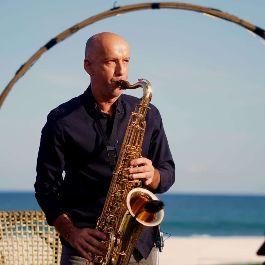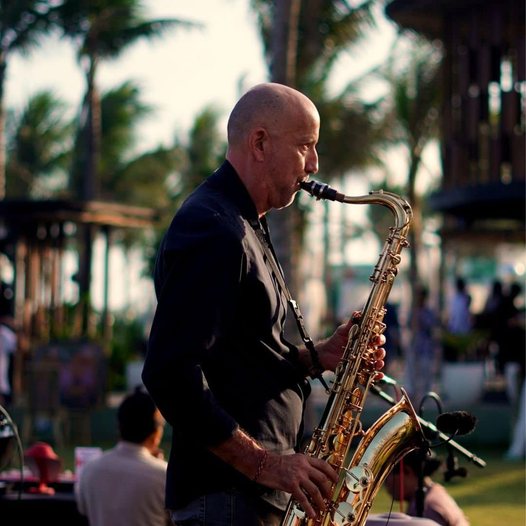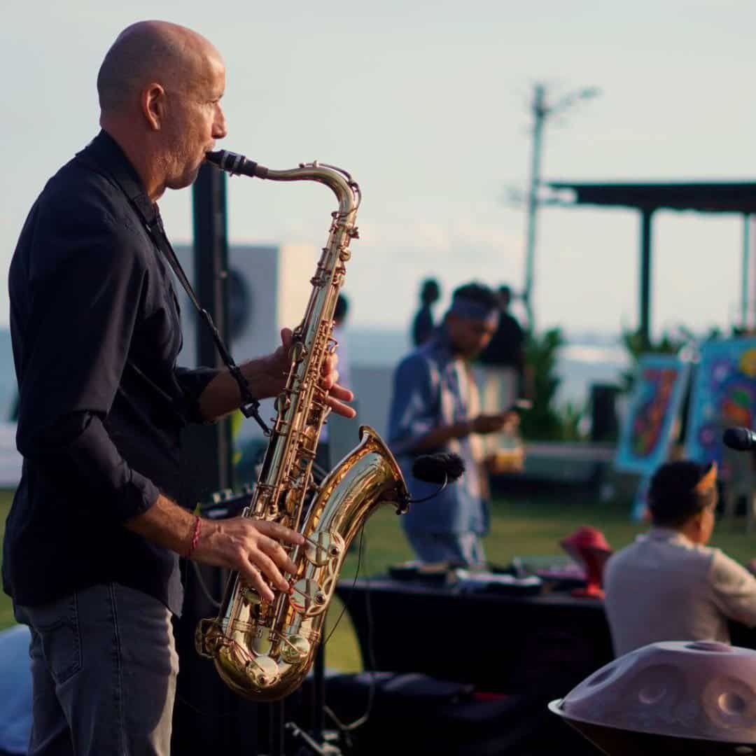 As waves kissed the shore, guests savored cocktails to the sound of Padany’s warm live saxophonist in Bali, the perfect soundtrack for a stylish beach event.